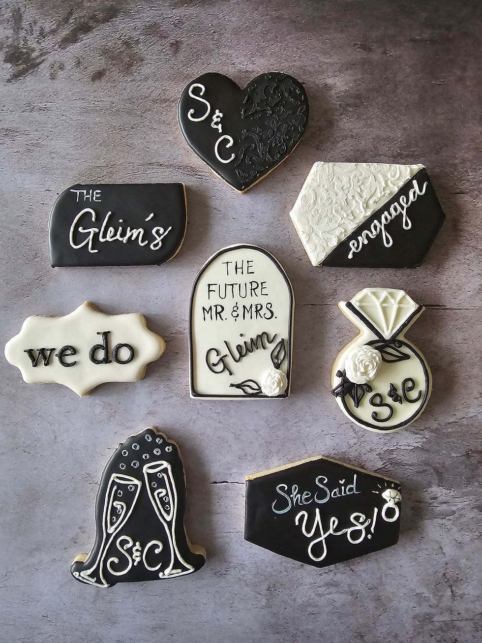8" Black Tie/White Tie Engaged Three-Layer Heart Cake